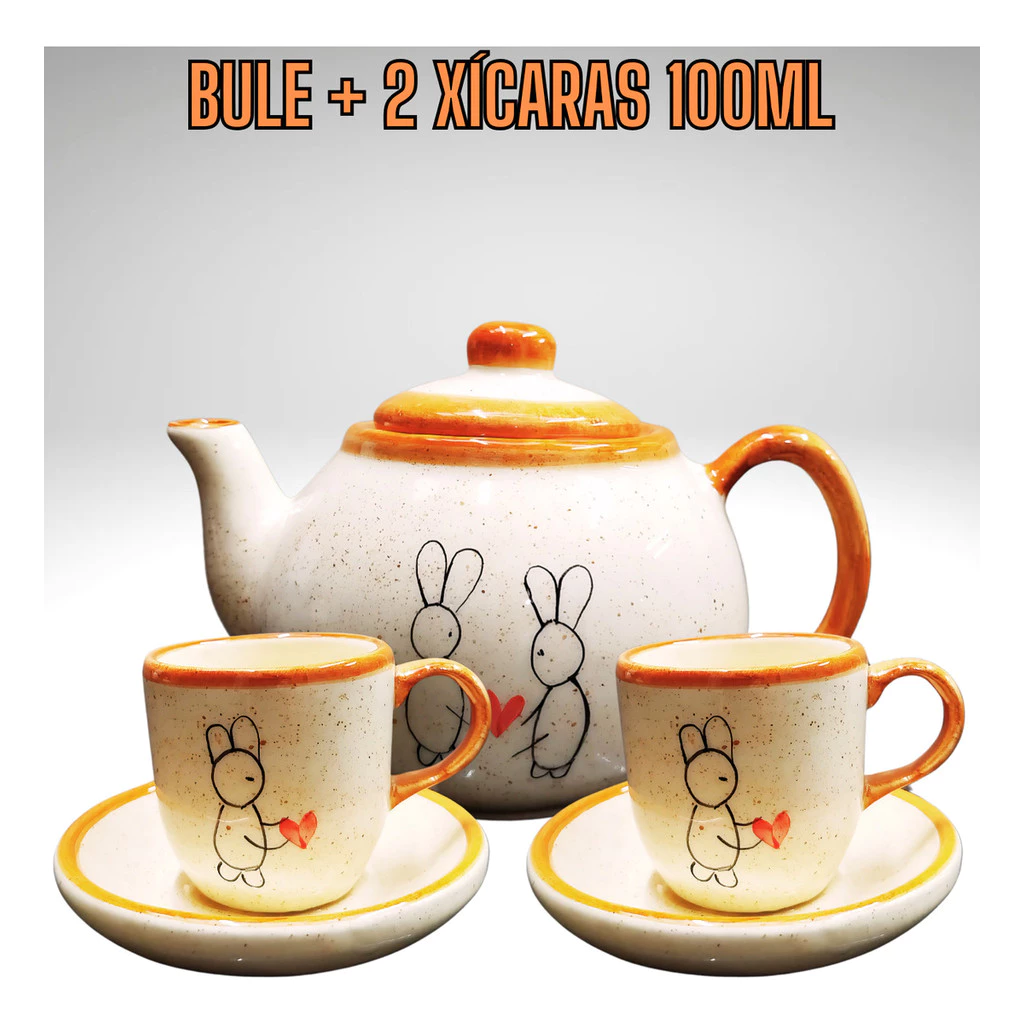 Kit de Café acompanha: 1 Bule 600ml + 2 xícaras pequenas 75ml e pires