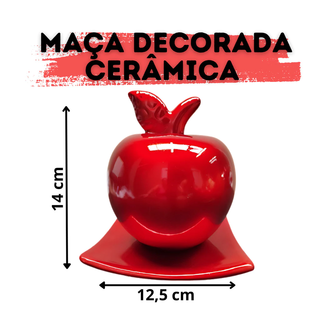 Fruta Decorativa em Cerâmica – Maçã com Suporte 🍎