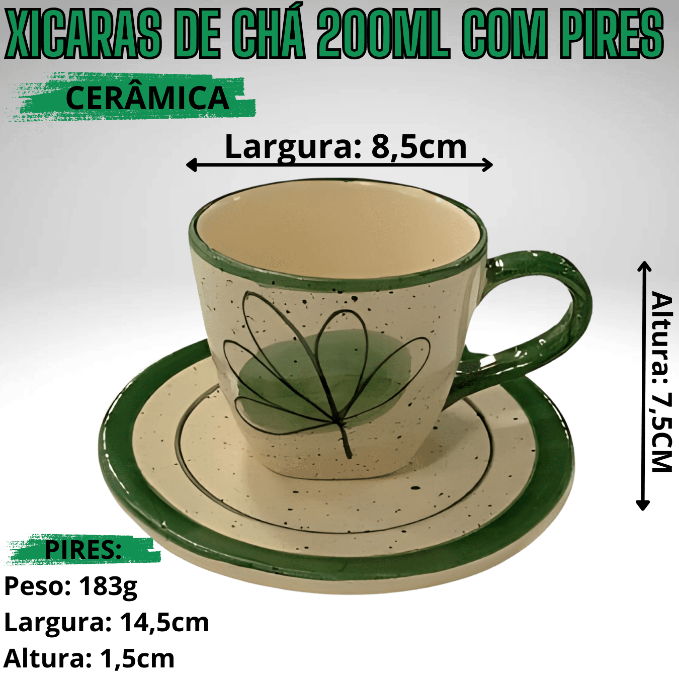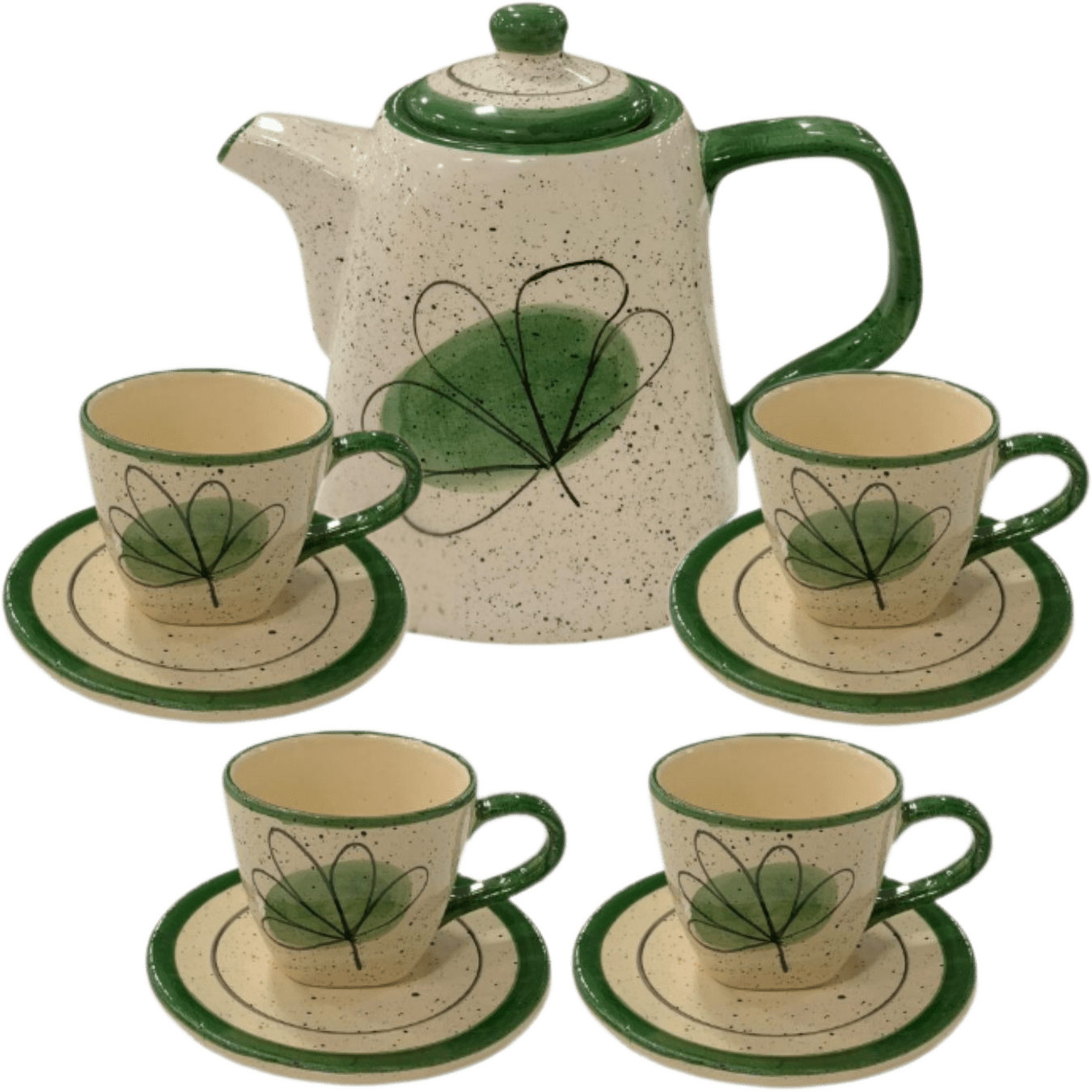 Jogo com 4 Xicaras exclusivo de 200ml + 1 Chaleira VERDE