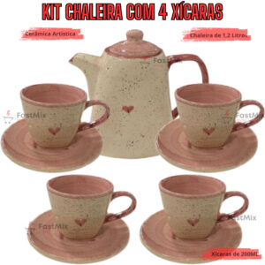 Kit 1 Chaleira de 1,2 Litros + 4 Xícaras de 200ml em Cerâmica Jogo de Chá Jogo de Café Kit 1 Chaleira de 1,2 Litros + 4 Xícaras de 200ml em Cerâmica Jogo de Chá Jogo de Café