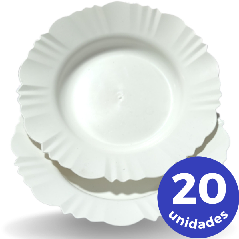 Kit 20 Prato pétala com borda redondo plastico fundo churrasco refeição festa aniversário